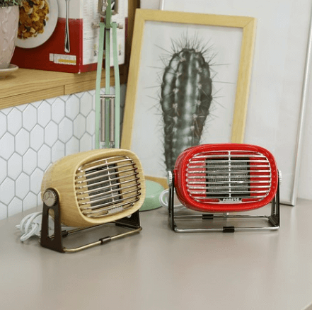 네 번째로 소개드리는 사무실 전기온풍기 추천은 레트로 감성의 PTC 미니 팬히터입니다. 책상 위와 같이 좁은 공간에 두고 활용하기에 적합한 온풍기인데요. 크기가 미니멀하고 작은데도 난방 효율이 좋으며 사용방법이 어렵지 않고 간편합니다. 초소형사이즈이기에 이동이 쉬운 점과 상하 90도 각도조절이 특징입니다.