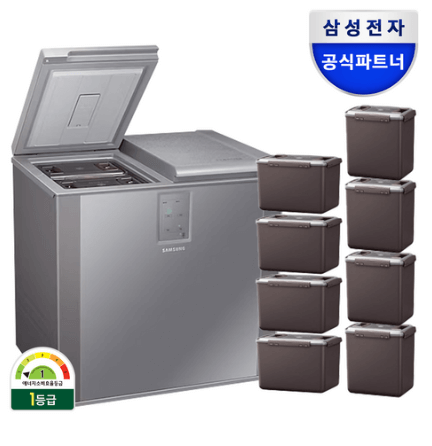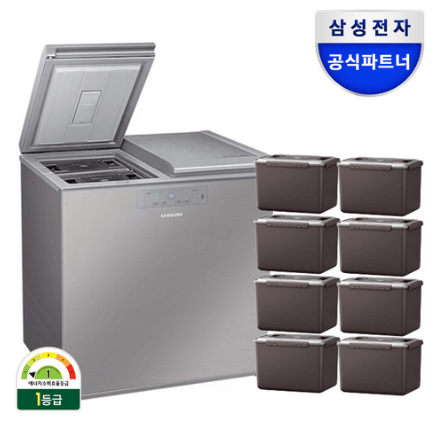 삼성 뚜껑형 김치냉장고 1등급 220L를 구매하는 모든 고객에게 안심 김치통 총 8통을 제공한다고 합니다. 에너지 소비 효율이 1등급이라 24시간 돌아가도 전기 요금 걱정이 없습니다. 221L로 여유롭게 저장 공간을 활용할 수 있습니다.